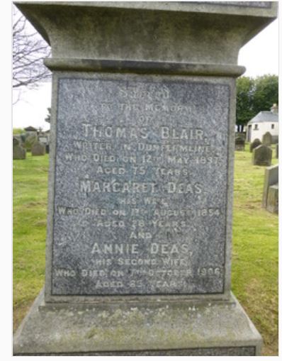 Thomas Blair is buried with his family in Cairneyhill graveyard: