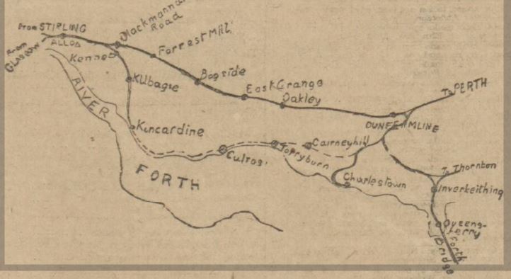 The above sketch shows the new branch of the North British Railway which links up Kincardine-On-Forth with Dunfermline, and which will be opened for public traffic on Monday first.