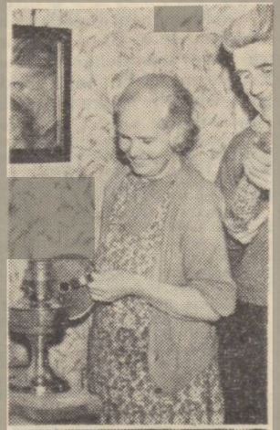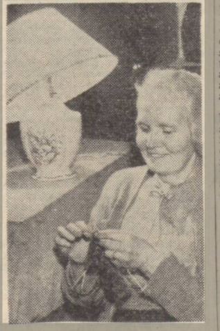 Top picture shows Mr and Mrs Reid of Cook’s Buildings, Main Street, Cairneyhill, cleaning their oil lamp for the last time: they had used only paraffin for 20 years. Below – Mrs Reid knits by the light of her new electric table-lamp.