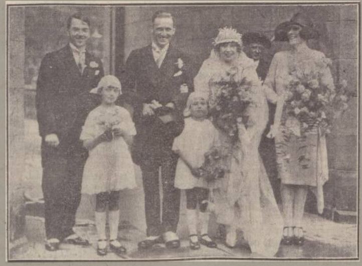 This is the wedding photo of Effie Gibb as featured in the Aberdeen Press and Journal dated 11 July 1928. The newspaper reported that George Murray Leys of Glen Tamar and Effie Harvey Gibb of Cairneyhill married on 10 July 1928 at King’s College Chapel. Miss Nessie Martin was bridesmaid, Mr G R Harvey was best man and the flower girls were Bunty and Margaret Gibb.